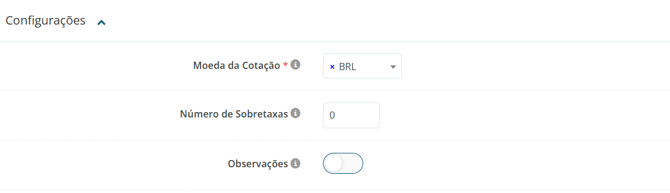 - Número de sobretaxas: Determine quantos campos de sobretaxa de frete você deseja disponibilizar para o fornecedor responder a cotação.