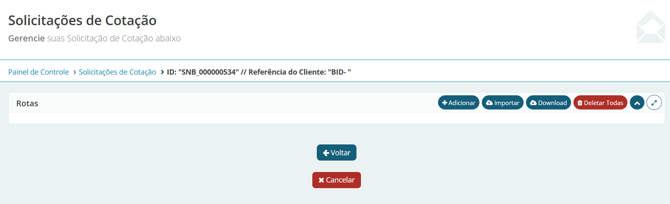A partir desse preenchimento, clique em criar rotas, nesse momento, a cotação ficará salva como rascunho e você ainda poderá editar alguns campos específicos se necessário.