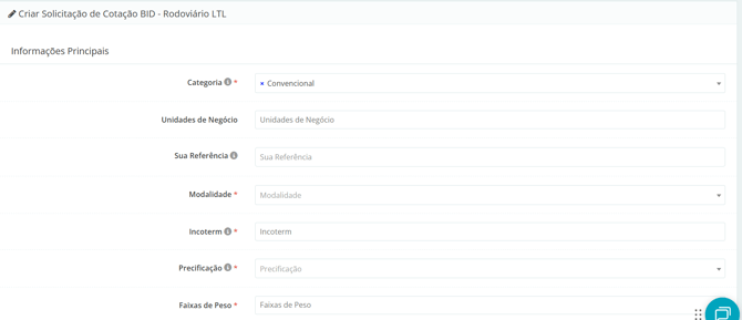 Para abrir um BID rodoviário LTL (fracionado), acesse esse passo a passo.