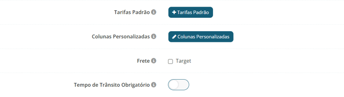 - Tempo de trânsito obrigatório: Determine se o tempo de trânsito deveria ser obrigatório em importações de tarifas.