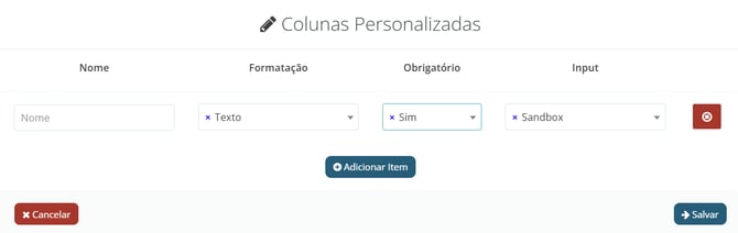 - Colunas personalizadas: Adicione colunas personalizadas para informar ou solicitar informações ao fornecedor. Estas colunas não terão influencia no calculo da cotação. Para entender melhor, acesse o tutorial de colunas personalizadas.