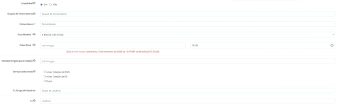 - Grupo de fornecedores: insira o grupo de fornecedores que irá participar da cotação.