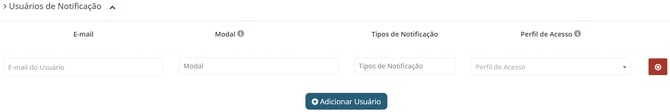 Já na aba "Usuários de Notificação", você poderá adicionar e-mails para receber atualizações, além do e-mail principal da conta, já inserido anteriormente.