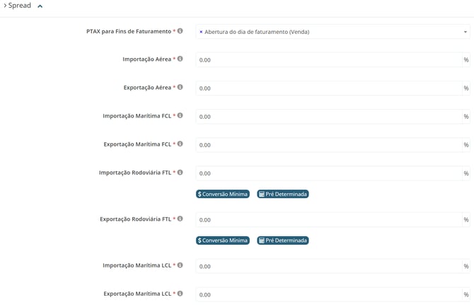 Já o spread será utilizado pelo sistema para ajustar o valor da PTAX, garantindo uma cobertura adequada contra as variações cambiais.