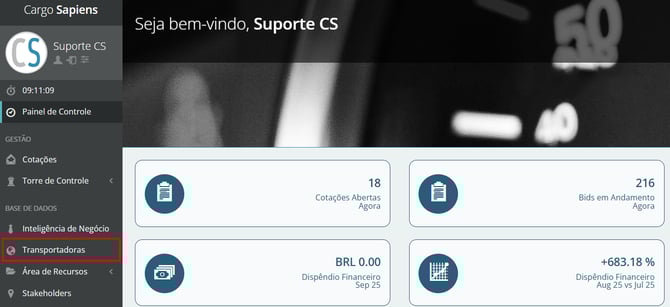 No menu lateral esquerdo clique em "Transportadoras".