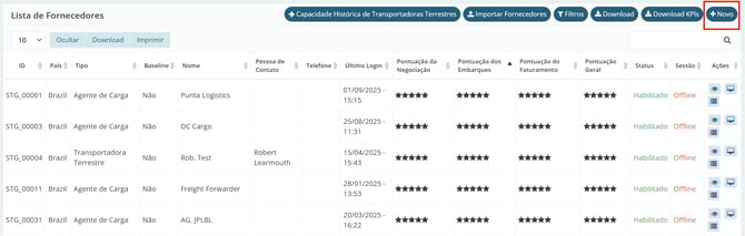 Acesse o sistema no ambiente onde você pretende cadastrar um novo provedor logístico. É importante ressaltar que cada cliente possui um ambiente exclusivo, o que significa que todos os cadastros e informações gerados nesse espaço são confidenciais e privados.