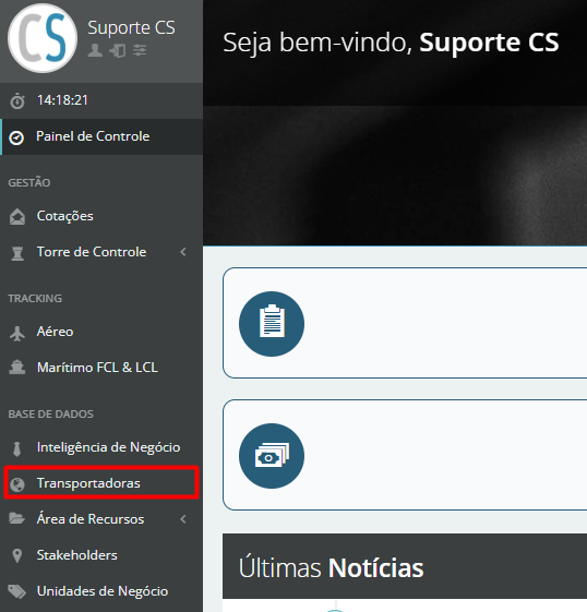Acesse o sistema no ambiente onde você pretende explorar a aba de Transportadoras. É importante ressaltar que cada cliente possui um ambiente exclusivo, o que significa que todos os cadastros e informações gerados nesse espaço são confidenciais e privados.