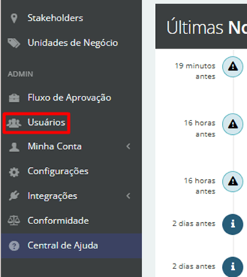 - Usuários: Acesso à gestão de usuários da plataforma.