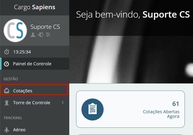 Para iniciar o processo, clique em "Cotações".