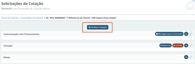 Em seguida, clique no botão Analisar Cotação, no centro superior da tela.