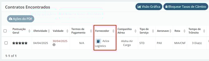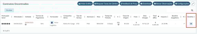 Clique no botão "Detalhes", representado pelo ícone de olho ao lado direito, para verificar os detalhes colocados pelo provedor logístico e conferi-las.