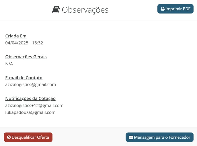 Ao desqualificar uma oferta por erro de preenchimento, o sistema automaticamente desconsidera esse provedor logístico no ranking da cotação SPOT. Isso significa que, mesmo que a oferta desqualificada estivesse inicialmente em primeiro lugar — por exemplo, por apresentar um valor menor devido à ausência de taxas obrigatórias —, ela deixará de ser considerada a mais vantajosa.