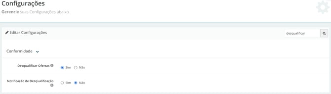 Em seguida, na barra de pesquisa, escreva "Desqualificar Ofertas" e habilite essa opção.
