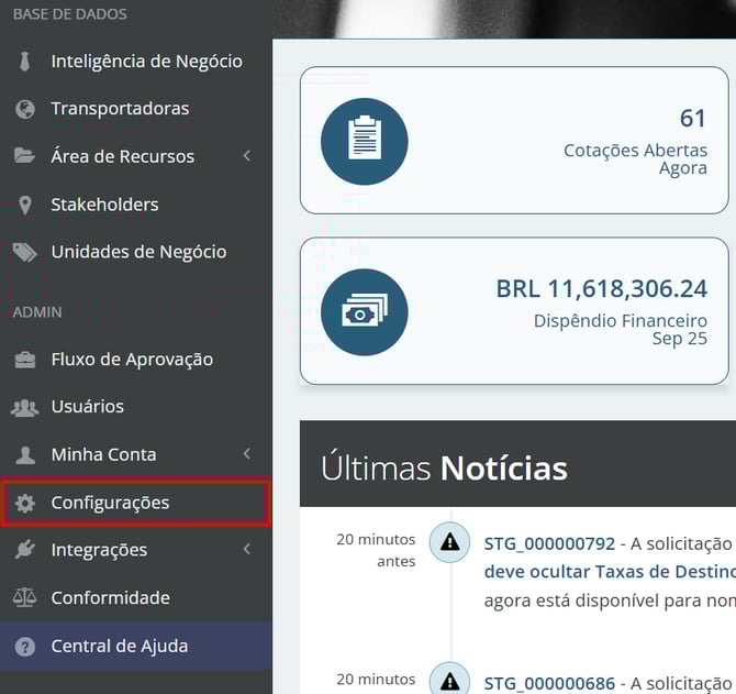 No menu lateral esquerdo, clique em "Configurações" para habilitar essa funcionalidade.