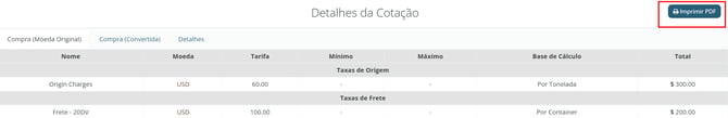 Como obter PDFs do tarifário do provedor logístico?