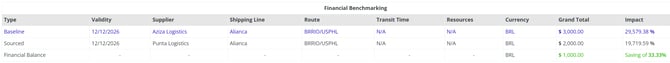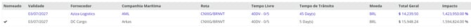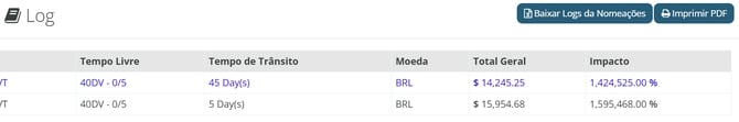 Caso o provedor logístico nomeado seja a melhor opção (em termos de valores) e não corresponda ao baseline, ou seja, o provedor logístico que você utilizava antes do sistema, o sistema calculará a diferença entre as duas ofertas como economia, e isso será exibido na página de log.