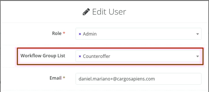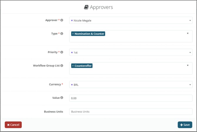 When defining an Approver, it will be necessary to indicate the Approval Workflow Type for which they will be responsible. In this tutorial, we will select the Counteroffer type.