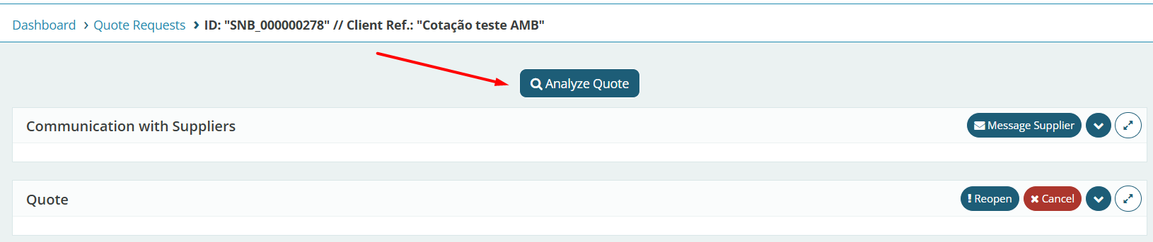 After accessing the quotation with status “Ended”, click the “Analyze Quote” button to view the proposal comparison screen under “Contracts Found”.