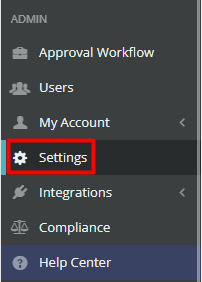 You will need to enable the approval workflow permission for sending quotations. In the left side menu, click on “Settings”, under the “Admin” section.