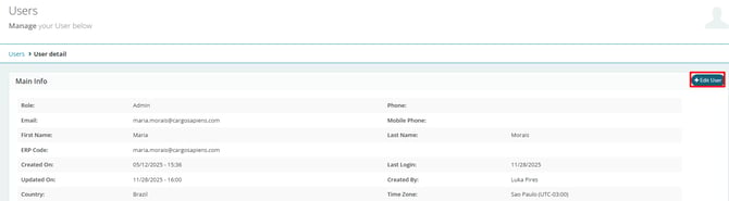 Finally, for people to be added, you must open the user who will be part of the approval workflow. In the left side menu, click “Users”, under the “Admin” section: