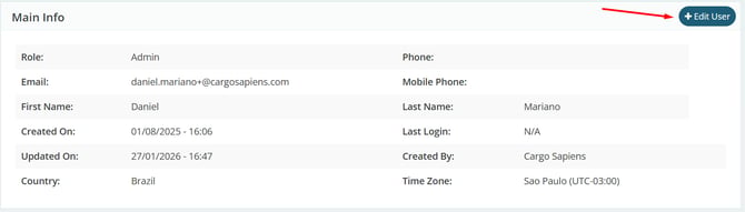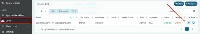 2. Locate the desired user and click the view icon (eye icon) in the Actions column.