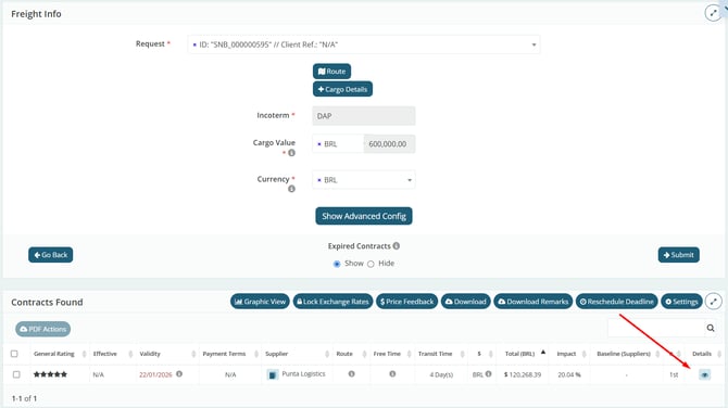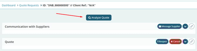 After accessing the quote with 'Ended' status, click the 'Analyze Quote' button to view the proposal equalization screen in 'Contracts Found'.