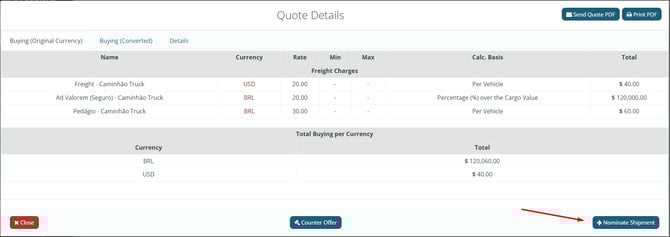 Then, click the 'Nominate Shipment' button, fill in the appropriate fields on the Nomination screen, and click the 'Request Approval' button.