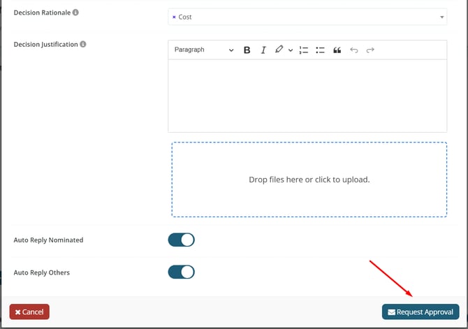 Next, provide a 'Message to Approver', set a 'Deadline for Approval', and click the 'Request Approval' button again.