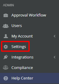 First, from the left side menu, go to “Settings”, within the “Admin” section.