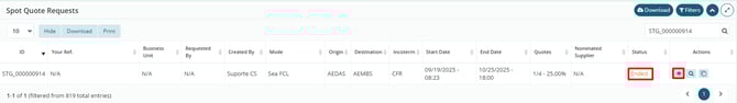 Then, open the details of the quotation for which you want to send the counteroffer: