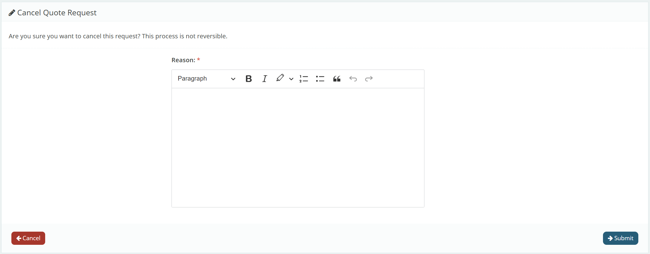 The system, for compliance reasons, will request a justification for this quote to be canceled.