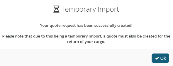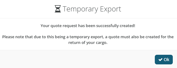 When filling in the information for a temporary (outbound) SPOT quotation and clicking “Submit,” the following pop-up will appear: