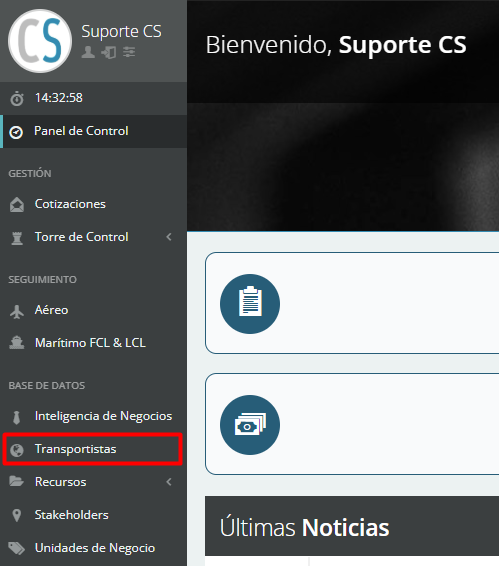 Acceda al sistema en el entorno donde pretende explorar la pestaña de Transportistas. Es importante destacar que cada cliente posee un entorno exclusivo, lo que significa que todos los registros e información generados en este espacio son confidenciales y privados.