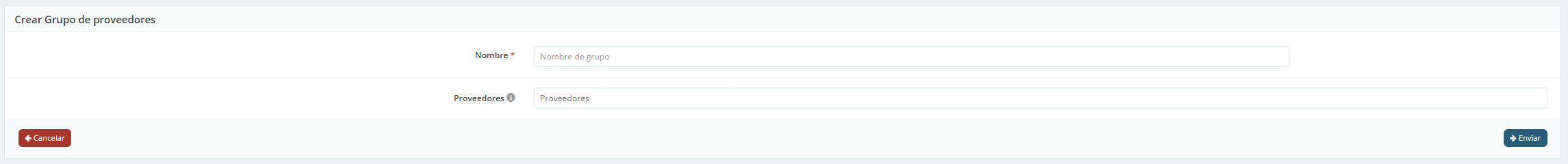 Para agregar un nuevo Grupo de proveedores, haga clic en el botón "+ Nuevo" en la parte superior derecha de la tabla.
