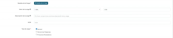 • Descripción de la Carga: Agregue una descripción de la carga para complementar la información para el proveedor logístico.