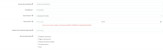 • Fecha Límite: Seleccione la fecha límite para el envío de las cotizaciones por parte de los proveedores logísticos.