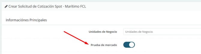Habilita la “Opción de Market Test” para permitir el acceso al crear una Spot. Además de eso, podrás visualizar las opciones de plazo y definir un tiempo mínimo de respuesta para los proveedores, si es necesario.