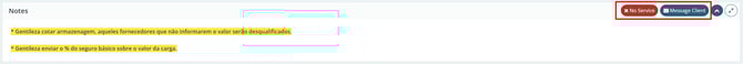 In the Notes tab, you will find two buttons: one to indicate the unavailability of services for this route (No Service button) and another to send a message to the client (Message Client button).