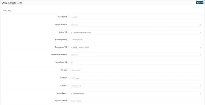 In maritime FCL, the system will pre-fill some charges according to the carriers’ public tariff table to make the process easier; however, it is necessary to verify the information to ensure it is correct and up to date.
