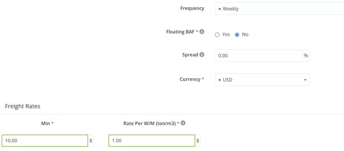 - Floating BAF: Indicate whether the BAF (Bunker Adjustment Factor/fuel) rate may fluctuate.