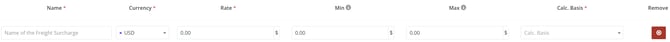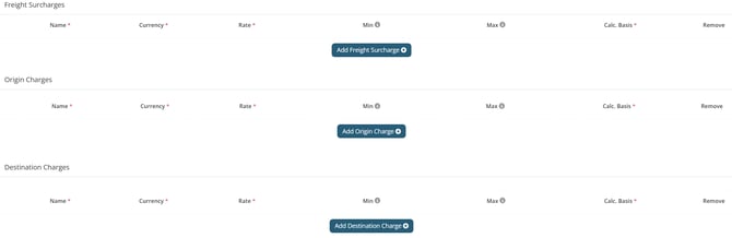 Next, you will have fields for Freight Surcharges, Origin Charges, and Destination Charges to be filled in. Simply click the green “Add Origin Charge” button to add a new line.