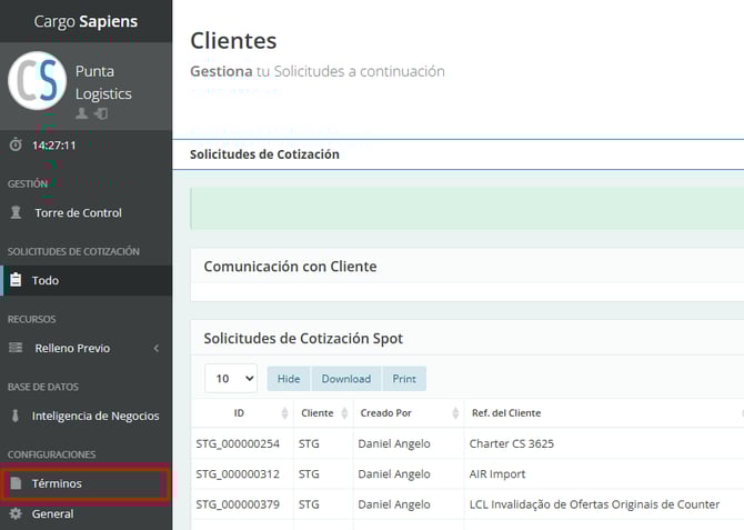 Acceda al sistema en el entorno del cliente para el cual desea consultar el spread y el plazo de pago negociado. Es importante destacar que cada cliente tiene un entorno exclusivo, lo que significa que todos los registros e información generados en ese espacio son confidenciales y privados.