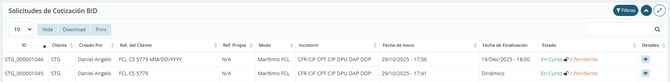 En casos de BIDs, el botón para la comunicación con el cliente estará ubicado en la parte superior derecha de la pantalla, en la tabla Comunicación con Cliente.
