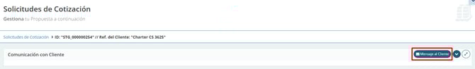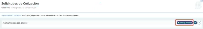 Para las cotizaciones SPOT, el sistema funciona de manera similar. Haga clic en el botón de ícono de ojo al lado derecho de la cotización SPOT e identifique el botón "Mensaje al Cliente" y haga clic.