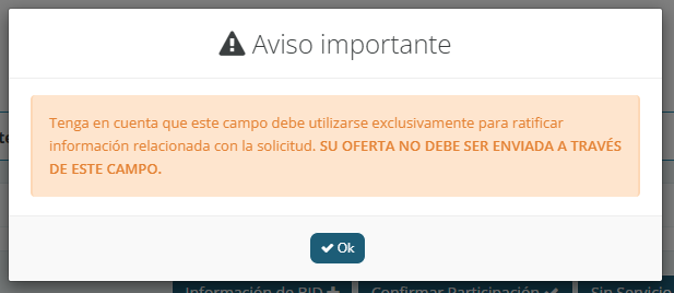Le aparecerá una advertencia de que a través de ese campo no se deben enviar tarifas de flete, debe ser utilizado solo para la ratificación de informaciones.