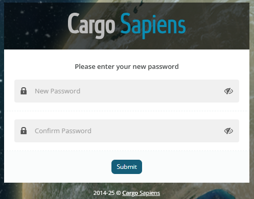 Al hacer clic en el enlace del correo electrónico, se le dirigirá a la pantalla para ingresar su nueva contraseña en ambos campos. Luego, haga clic en 'Enviar' (en inglés, Submit).