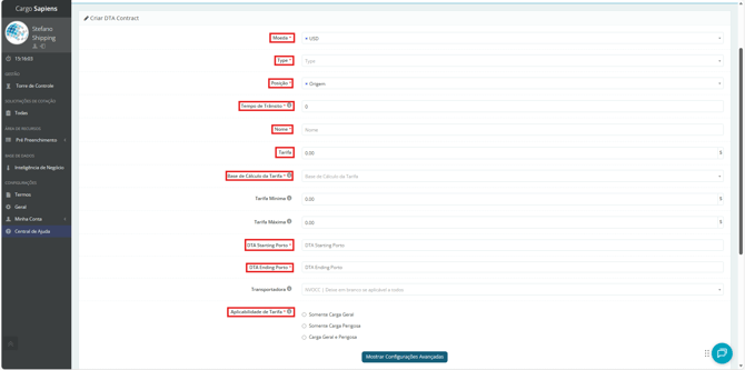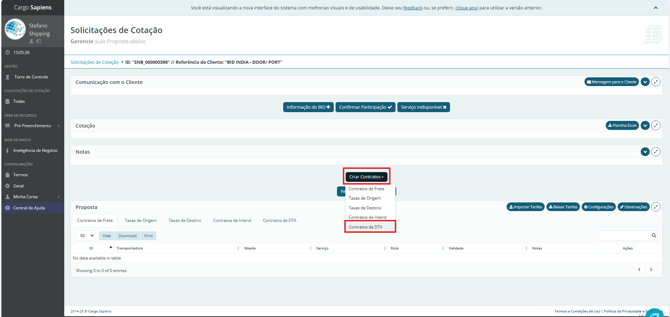 Existem duas formas de cadastrar os valores de DTA em um BID Internacional na plataforma da Cargo Sapiens: