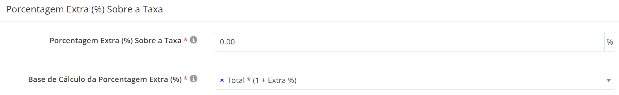 Ao editar e clicar em "Mostrar configurações avançadas", no primeiro campo é possível adicionar uma porcentagem a ser adicionada ou descontada do valor total da DTA, após o cálculo final do sistema.