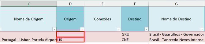 Se você não souber o código do porto ou aeroporto, consulte a última aba da planilha, onde está disponível a base de dados do sistema. Quando o BID for aéreo, a aba se chamará “Aeroportos”. Quando for FCL ou LCL, aparecerá como “Portos”.